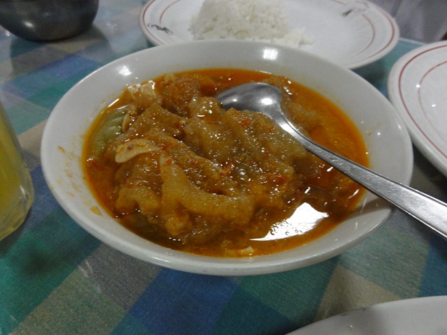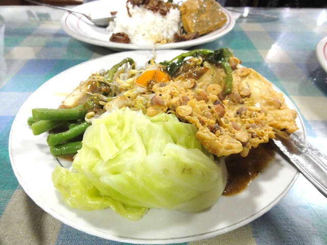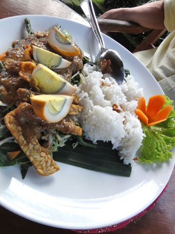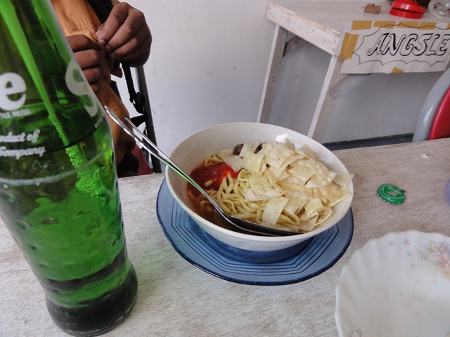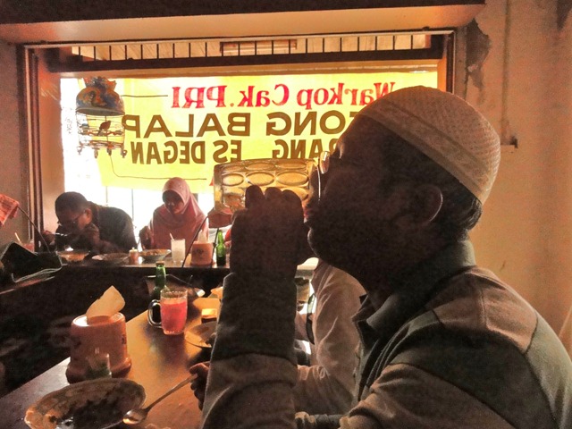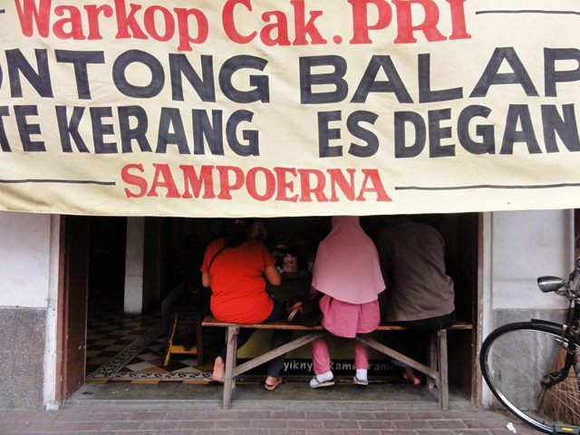 His extracurricular class was cancelled so he was out early. The R.R. in his name is the initial of his church. This is the first Christian we met in Java. We continued our walk and he followed a few yards behind. We passed a warung, a street-side stall, and I turned to ask him if he would like us to buy him food. He nodded and we all went in to sit on the bench.
