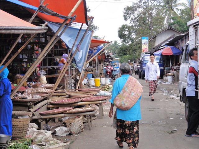 We stopped whenever we saw rice harvesting to shoot some footage and to talk. We the workers were farm laborers, people without land. They get a small share of the rice they harvest. When there is no farm work, men go to cities like Solo to drive pedicabs. You can see so many of them in Solo. They offer their service by saying “Becak?” every time we pass. We shake our head and smile. They smile back generously.
