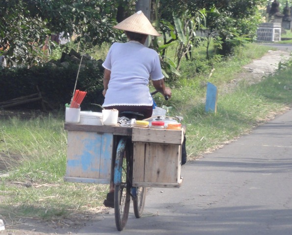 We didn’t see enough people using their service. Most are idle or asleep in their pedicabs. We rode in a becak once in Solo. The compartment felt tight. Had we been eating too much Indonesian food? Then he started pedaling from the back; we in front facing traffic. It felt a little unnerving but our driver was so happy he was giddy laughing, almost all the way. Life must be harsh but he knew how to be happy.