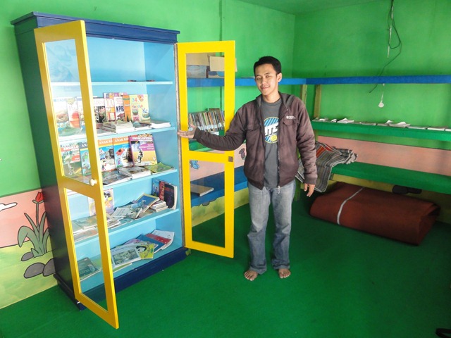 Further down the narrow alley there was a small open space, roofed with tiled floor. The sign said that the pavilion was used for village meetings and a make-shift infant clinic (Posyandu). Next to that was a tiny “Taman Bacaan”, a kid’s library.