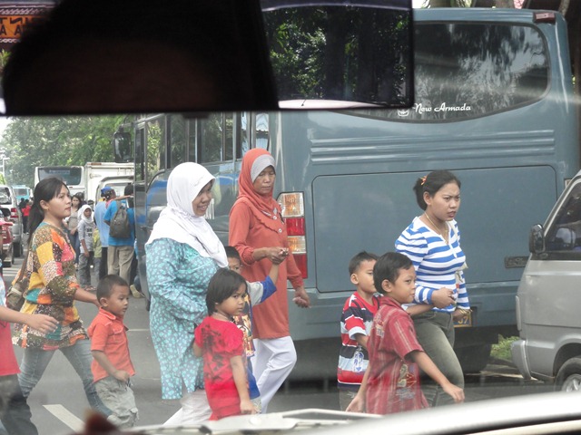 As he educated Kian and me Henry drove with gusto – passing trucks on blind curves and tailgating. We progressed steadily across the boat’s keel and made a left at the rudder passing manicured tea plantations and strawberry farms. The road carved through deep ravines terraced with mist-soaked cabbage fields and a million roadside shops offering fresh fruits, live rabbits, air for your tires, fish, ayam, pineapple and durian.