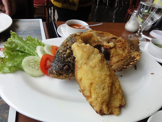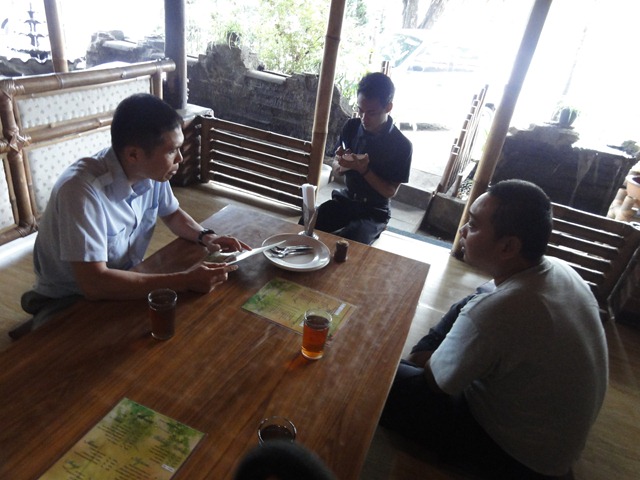 Henry told us that he came to the hot springs about once a week when friends visited and offered to take us for massages later. “Beautiful ladies,” he said. “I like beautiful ladies.” He then let out a long bird-like cackle. After an energizing soak in the spring (think big resort, not pools formed in Jurassic-period rock) and fresh, iced strawberry juice Henry treated us to some local food in Lembang. We had fresh eels caught in the local rice fields and I tried my first lime-soaked, tamarind-marinated cow stomach. It was actually very good.