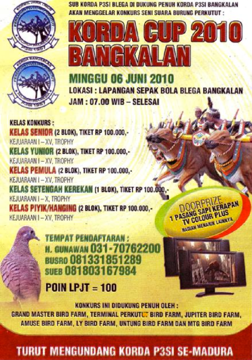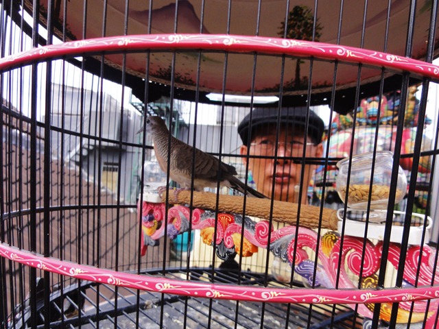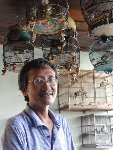 As Kwan was leaving Henry said, “He has four wives.” Kwan smiled and nodded. Apparently you can have multiple wives in Indonesia, but four is the limit. Ha Lim, another breeder and owner of the ass-kicking perkutut Napoleon (complete in a regal purple and gold imperial cage) arrived and told us his strategy for winning the upcoming competition in Solo. Henry would hire a driver named Boon Cheese the next day to take us and birds there. But first we would meet the national head of the Perkutut association General Zieruni and visit his Xena Warrior Princess Bird Farm.