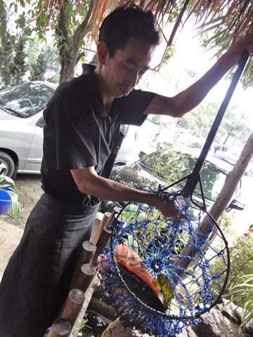No sooner had Jaya dropped us off at Henry Manila’s Bird Farm and Student Dormitory then the extremely generous Henry had us in the car on the way to a volcanic hot spring. On a bumpy lane more dry stream bed than street we began our climb over Upside-down Boat Mountain. As we passed roadside huts offering pumpkins, papaya and Kelinci, (bunny sate) Henry talked Perkutut.